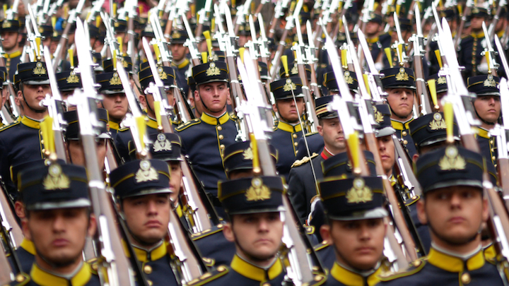 A mashup of politicians speeches is accompanied by marching masses of soldiers. What appears as a homogenous army, cathegorized by rangs, united by nationality, arguments, ethics or simply the rhythm of their marching – consists out of a heterogenous crowd of individual humans, each with their own character & emotions. |
